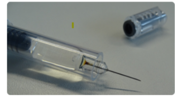 Ejemplo de jeringa con oxidación en la base de la aguja