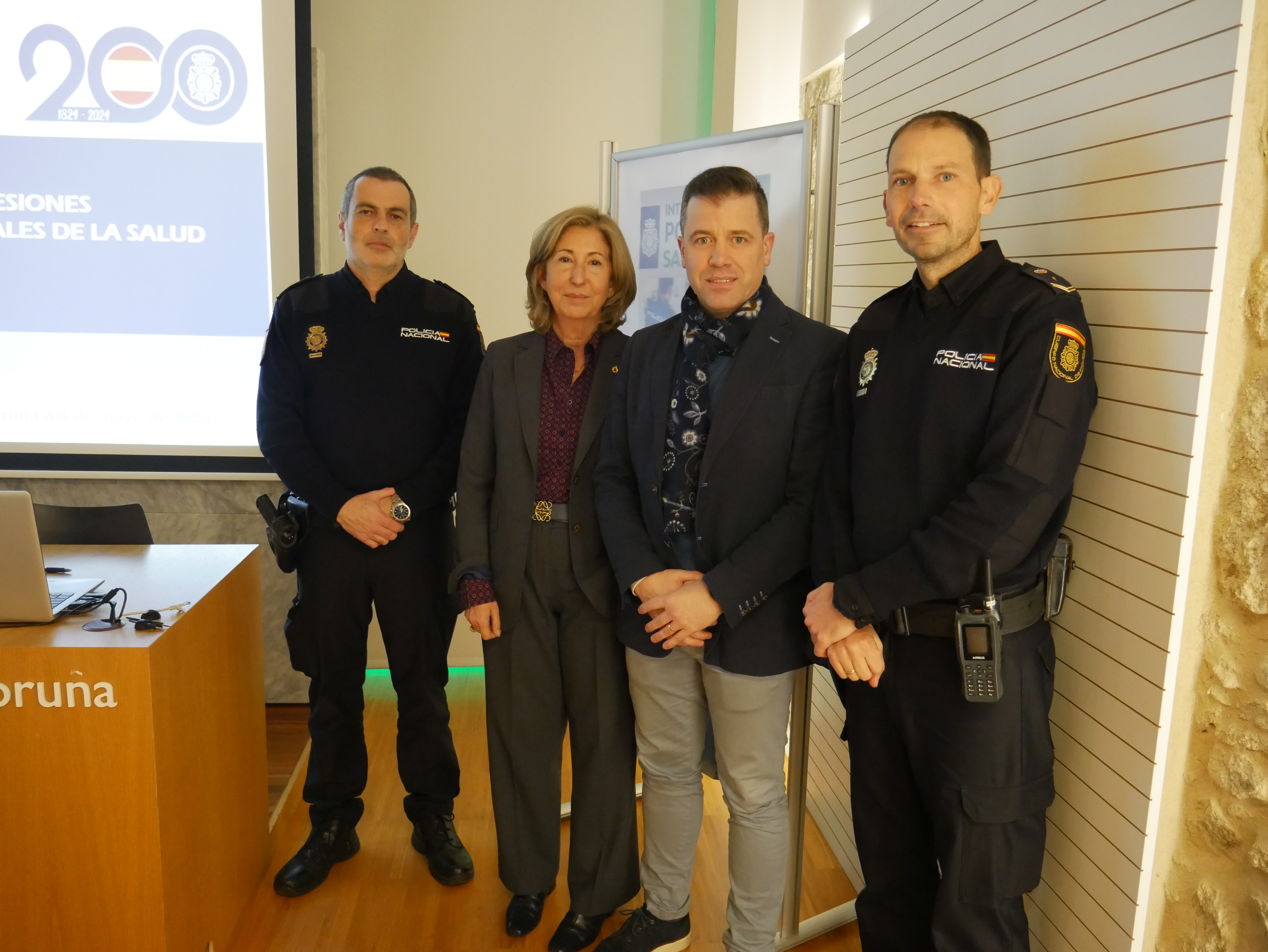 Concretamente, Simón Fernández, Inspector Policía Nacional e interlocutor Policial Sanitario, y Abraham Arruñada, agente de policía destinado a la Delegación de Participación Ciudadana, fueron los encargados de realizar la presentación. Y por parte del COFC, Sara Catrain, presidenta, y Antonio Busto, vocal de Junta de Gobierno encargado de seguridad, participaron también en el encuentro.